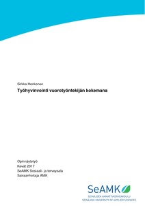 Opinnäytetyön tarkoituksena oli kuvata Kaskisten Metsä Boardin vuorotyöntekijöiden työhyvinvointia sekä sitä, miten vuorotyö vaikuttaa heidän terveyteensä. Aineisto kerättiin kyselylomakkeen avulla lokakuussa 2016. Kyselylomake lähetettiin 55:lle vuorotyöntekijälle. Täytetyn lomakkeen palautti 41. Vastausprosentti oli 75%. Aineisto analysoitiin SPSS-tilastointiohjelmalla.