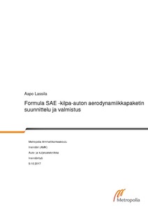 Insinöörityössä käsitellään Formula SAE -kilpa-auton aerodynamiikkapaketin suunnittelua ja valmistusta vaihe vaiheelta.
