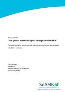 Tässä opinnäytetyössä tavoitteena oli tutkia perhepäivähoitajien työhyvinvointia sekä kokemuksia uudesta varhaiskasvatuksen organisaatiosta Soinin kunnassa. Tutkimus toteutettiin teemahaastatteluina, joissa Soinin kunnan alueella toimivilta perhepäivähoitajilta kyseltiin heidän kokemuksiaan ja ajatuksiaan työhyvinvoinnista ja organisaatiomuutoksesta. Tutkimus toteutettiin yhteistyössä Soinin kunnan kanssa.