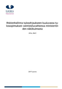 Tämän opinnäytetyön tavoitteena oli ymmärtää ministeriöiden näkökulmasta, miten riskienhallinta huomioidaan eri ministeriössä tulossopimusten valmisteluvaiheessa, mitä eri tekijöitä tähän ilmiöön liittyy ja miten ne suhteutuvat toisiinsa. Tutkimuskysymykseksi asetettiin: ”Millä tavoin riskienhallinta on mukana tulossopimuksen valmisteluvaiheessa ministeriön näkökulmasta?” Valtionhallinnossa on käytössä tulosohjausprosessi, jolla ministeriö ohjaa alaisuudessaan olevia virastoja sopimalla virastojen kanssa yhteisesti tulossopimuksen vuosittaisista tavoitteista neljän vuoden sykleissä. Tulostavoitteet johdetaan hallitusohjelmasta, virastojen lakisääteisistä tehtävistä, hallinnonalan strategiasta sekä talousarviosta.