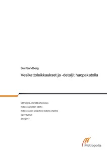 Tämä opinnäytetyö toteutettiin NCC Suomi Oy:n asuntorakentamisen yksikölle (AR), joka on osa NCC Buildingia. Aiheena oli vesikattoleikkaukset ja detaljit huopakatolla. Työn aihe valittiin osittain jälkimarkkinoinnin kanssa yhdessä keväällä 2017, koska julkisuudessa oli ollut paljon esillä ongelmia, koskien kerrostalojen vesikattoja. Tarkoituksena oli perehtyä huopakattoisten kerrostalojen vesikattojen leikkaus- ja detaljikuviin. Lähtökohtana oli oletus, että ainakin osa ongelmista johtuu puuttuvista detalji- ja leikkauskuvista. Työssä etsittiin kyseisen vesikattotyypin riskirakenteita sekä tutkittiin niistä löytyviä kuvia.