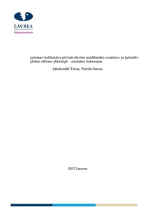 Tämän opinnäytetyön tarkoituksena oli selvittää Loimaan kotihoidon piirissä olevien asiakkaiden omaisilta, miten he kokevat tällä hetkellä yhteistyön toimivan heidän ja kotihoidon työntekijöiden välillä, mitä haasteita he yhteistyössä kokevat sekä minkälaisia hyviä kokemuksia heillä on yhteistyöstä kotihoidon työntekijöiden kanssa. Tarkoituksena oli myös selvittää omaisten toiveita yhteistyölle kotihoidon kanssa. Opinnäytetyömme tavoitteena oli tuottaa tietoa, jota voidaan hyödyntää kehitettäessä kotihoidon piirissä olevien asiakkaiden omaisten ja kotihoidon työntekijöiden välistä yhteistyötä. Tämä opinnäytetyö toteutettiin yhteistyössä Loimaan kotihoidon kanssa.