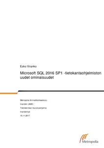 Microsoft SQL 2016 SP1 -tietokantaohjelmiston uudet ominaisuudet
