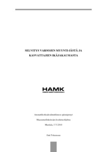 Tämä opinnäytetyö on toteutettu yhteistyössä Suomen Hippoksen kanssa ja sen tarkoituksena on tuottaa tietoa kotimaiseen hevoskasvatukseen liittyvän suunnittelun pohjaksi. Työn tutkimusosion ensimmäisessä osassa selvitetään suomenhevos- ja lämminveristen ravihevosvarsojen myynti-ikää ja toisessa osassa suomenhevosten, lämminveristen ravihevosten, ratsujen ja ponien kasvattajien ikäjakaumaa.