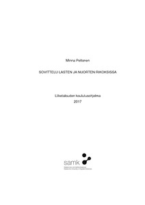 Tämä opinnäytetyö on laadullinen tutkimus lasten ja nuorten sovittelusta ja rikollisuudesta. Siitä käy ilmi, mitä rikoksia nuoret yleisimmin tekevät, milloin sovittelu on ajankohtaista ja kenelle sovittelu sopii. Tutkimuksen tarkoituksena oli myös saada selville miten eri viranomaiset näkevät sovittelutoiminnan ja kuinka aktiivisesti he itse toimivat sovittelussa. Työn toimeksiantajana toimi Satakunnan oikeusaputoimisto. Heille tutkimus tuo tietoutta, miten muut virastot suhtautuvat sovitteluun, millaisissa asioissa sovittelu on muiden mielestä paikallaan ja mitä hyötyä onnistuneella sovittelulla on rikosprosessin kannalta.