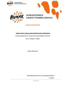 Tämän opinnäytetyön tarkoituksena oli tutkia, millainen itsearviointimenetelmä on toimiva nuoren käytössä, kun työmuotona on sukupuolisensitiivinen tyttötyö. Sukupuolisensitiivinen tyttötyö on yksi nuorisotyön muoto, jossa nähdään sukupuolien eri ilmenemismuodot ja tavat ilmaista tyttöyttä. Siinä tuetaan nuoren kasvua, omanlaisekseen yksilökseen. Opinnäytetyön tarkoituksena oli myös saada selville, miten itsearviointi on hyödyllinen nuorille ja nuorten ryhmänohjaajille. Itsearviointimenetelmästä luotiin ensin testiversio, jota koekäytettiin keväällä 2017 Turun Tyttöjen Talon® kolmessa Kasvu-ryhmässä. Testi-itsearvioinnin ja kehittämistyönmenetelmien tuloksien perusteella, oli tarkoitus kehittää lopullinen itsearviointimenetelmä, joka sopii sukupuolisensitiiviseen tyttötyöhön käytettäväksi.