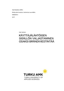 Käyttäjälähtöinen sisältö, toisilta nimiltään käyttäjien luoma sisältö tai käyttäjäsisältö, on tärkeä työkalu brändiviestinnässä sosiaalisen median aikakautena, sillä yhä useampi kuluttaja luottaa enemmän vertaiskäyttäjän luomaan sisältöön kuin brändin luomaan sisältöön. Opinnäytetyö käsittelee ensin erilaisia mediakategorioita ja paneutuu erityisesti ansaitun median strategisiin ratkaisuihin. Lisäksi käsitellään eri sukupolvien sosiaalisen median käyttötottumuksia,asiakaskokemuksen johtamista, palvelutilanteita sosiaalisessa mediassa sekä miten toimia somekriisin yllättäessä. Lopuksi keskitytään konkreettisiin ratkaisuihin: selvitetään millainen sisältö palvelee brändiä ja mikä motivoi käyttäjää luomaan sisältöä sosiaalisessa mediassa. Työ tarkastelee myös kahta eri käyttäjälähtöisen sisällön hyödyntämisen ratkaisua teorian ohessa.
