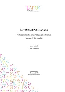 Opinnäytetyö toteutettiin yhteistyössä Ylöjärven kaupungin kanssa. Opinnäytetyön tarkoituksena oli tehdä kotisaattohoidon opas Ylöjärven kaupungin kotitiimin hoitohenkilökunnalle. Lisäksi hoitohenkilökunta sai käyttöönsä opinnäytetyön kirjallisen osuuden. Tavoitteena oli auttaa Ylöjärven kaupunkia kehittämään kotisaattohoitoaan, sekä madaltaa hoitohenkilökunnan kynnystä työskennellä saattohoidettavan potilaan kotona. Tärkeimpinä tehtävinä oli selvittää, millaista on hyvä kotisaattohoito, ja minkälainen hoito-opas on hyvä henkilökunnan käyttöön. Opinnäytetyö tehtiin toiminnallisella menetelmällä, ja se painottui tuotokseen.