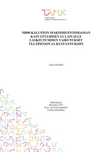 Opinnäytetyön tavoitteena oli tuottaa sovellettua tutkimustietoa Puolustusvoimille NH90-helikopterikaluston maksimilentomassan kasvattamisen ja laivalle laskeutumisen vaikutuksista. Tarkoituksena oli selvittää helikopterin valmistajan ohjekirjallisuuden avulla, millaisin reunaehdoin suurinta mahdollista lentomassaa voidaan kasvattaa nykyisestä 10 600 kilosta 11 000 kiloon tai suorittaa laivalle laskeutumisia. Lisäksi tarkoituksena oli selvittää, kuinka kyseiset erikoistilanteet vaikuttavat NH90-kaluston laitteiden huoltoihin ja laitevaihtoihin normaaliin lentotoimintaan nähden. Kyseisten ylläpitovaikutusten perusteella voitiin laskea näistä syntyvät mahdolliset lisäkustannukset.