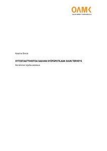 Opinnäytetyöni tarkoituksena oli tuoda tietoa sytostaattihoitojen vaikutuksista suun terveyteen ja näin auttaa suun terveydenhuollossa toimivia suuhygienistejä kohtaamaan sytostaattihoitoa saava syöpäpotilas. Päätavoitteenani oli käsitellä sytostaattihoitojen vaikutuksia suun terveyteen nimenomaan narratiivisen kirjallisuuskatsauksen menetelmää hyödyntäen. Opinnäytetyössäni suoritettiin kirjallisuuskatsauksen periaattein kirjallisuushaku, jonka tuloksina löytyi useita erilaisia tutkimuksia sytostaattihoitojen vaikutuksista. Kirjallisuushakujen ja narratiivisen kirjallisuuskatsauksen tuloksena muodostui kattavasti tietoa sytostaattihoitojen vaikutuksista suun terveyden kannalta.