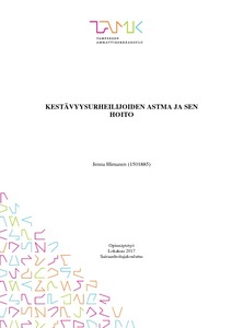 Opinnäytetyön tarkoituksena oli tuottaa Tampereen ammattikorkeakoulun hoitotyön opiskelijoille opetusmateriaali, jossa käsitellään kestävyysurheilijoiden astmaa ja sen hoitoa. Opinnäytetyön tehtävinä oli selvittää, mikä on astma ja miten sitä hoidetaan. Työssä paneuduttiin erityisesti, miten astma vaikuttaa kestävyysurheiluun. Vaikutuksia tutkittiin sekä kirjallisuuden pohjalta, että urheilijoiden kokemuksia apuna käyttäen. Työn tehtävänä oli myös selvittää, millaista on hyvä omahoidon ohjaus astman hoidossa. Opinnäytetyön tavoitteena oli tuottaa opiskelijoiden saataville uutta tietoa erityisesti astmasta ja sen hoidosta kestävyysurheilijoilla.