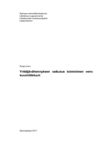 Opinnäytetyön aiheena oli yrittäjävähennyksen vaikutus toiminimen verosuunnitteluun. Tavoitteena oli selvittää, onko yrittäjävähennyksellä vaikutusta toiminimen verosuunnitteluun ja millaisia vaikutukset ovat. Asiaa tutkittiin vähennyskelpoisten kulujen kautta. Tutkimuksella selvitettiin, onko olemassa vähennyskelpoisia kuluja, jotka olisi mahdollista siirtää vähennettäväksi yrittäjän henkilökohtaiseen verotukseen.