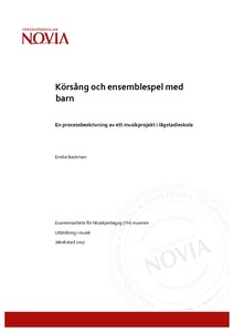 Jag hoppas att detta arbete kan inspirera andra musiklärare i arrangering samt i vokal- och instrumental ensembleövning med barn. This thesis is a process description of a music project that my sister and I held in a primary school in May and June 2017. The aim of this thesis is to give a review of how we went about during the planning of the project, the execution of it and to give an assessment of the process. Themes that are discussed and analysed in this thesis are creating pedagogical arrangements, teaching music ensembles, choral singing and body-percussion for children.