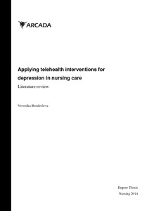 Depression is a mental illness with disabling functional, social and physical impacts affecting over 300 million people globally. Despite there are known, effective treatments for depression, only about half of those affected receive such treatments. The major barriers to-wards receiving needed care are limited access and underdiagnoses. Telehealth offers numerous benefits that may overcome some of these barriers. One aim of this study was to provide nursing professionals with information about depression and Telehealth interventions as a treatment possibility; the second aim is to identify the role of nurse in depression treatment in using the Telehealth interventions. The study was performed as a literature re-view with inductive content analysis. Data was acquired from reliable databases such as EBSCO, Medscape and Google scholar. Together, 12 articles were selected for the further analysis. Due to limitation in number of articles available, author have included articles studying several different Telehealth tools for depression treatment. As the foundation for answering the research questions posed in this study Chronic care model was applied. This study answered the question about the effectiveness of Telehealth interventions when treating depression and provided information about the benefits and challenges related to these interventions. According to the findings, Telehealth interventions had effect on depression leading to reduction in depressive symptoms. The findings further provided valuable information about how can be Telehealth tools integrated into existing nursing practice with regard to improve outcomes depression care. Nurses’ role in encouraging patient engagement, supporting self-management and providing psychoeducation seems to be essential. The results of this study will help nurses working with depressed patients by giving them more tools to treat depression.