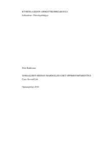 Opinnäytetyössä on kartoitettu sosiaalisen median sekä casen eli Second Lifen käytön mahdollisuuksia opetuksessa. Työssä on esitelty sosiaalisen median käsite, sen syntyhistoria, sen tarjoamat teknologiat ja yhteisöt. Samalla on kuvattu myös yleisimpiä verkko-oppimisympäristöjä sekä niiden pääasiallisia ominaisuuksia. Ohessa kartoitettiin myös casen eli Second Lifen tarjoamia mahdollisuuksia oppimisympäristönä.