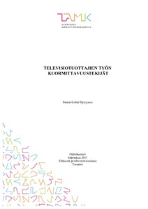 Tässä laadullisessa opinnäytetyössä tutkittiin televisiotuottajien työn kuormittavuustekijöitä. Tarkoituksena oli löytää kuormittavuustekijöistä ne, mitkä vaikuttavat tuottajien työ- ja vapaa-aikaan eniten, sekä kerätä tuottajien omia kokemuksia kuormittuneisuudesta. Tavoitteena oli löytää televisiotuottajien työn yhdistäviä kuormittavuustekijöitä, sekä kerätä tietoa kuormittavuustekijöistä ja media-alasta yhteen. Osana tutkimusta on suoritettu kuusi teemahaastattelua, joissa tuotannollisten tehtävien ammattilaiset kertovat omia kokemuksiaan media-alan kuormittavuudesta.