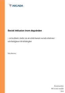 Social inklusion inom dagvården – en kvalitativ studie om att stöda barnets sociala relationer och färdigheter till delaktighet