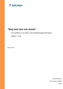 Med hjälp av den teoretiska grunden av litteraturgenomgången har jag utvecklat programmet ”Skoj med rytm och rörelse”. Programmet är planerat för en daghemsgrupp med 13 barn i åldern 1-3. Ett sekundärt syfte med arbetet är att någon annan i framtiden skall kunna utnyttja programmet för sin egen, motsvarande, daghemsgrupp. This thesis paper describes the development of a rhythm- and movementprogram for children aged 1-3. The purpose was to develop the program, “Fun with rhythm and movement”, using a literature review. My research questions were the following: 1. What are the frames you have to work in, when developing a rhythm- and movementprogram for children aged 1-3? 2. What kind of frames does the program developer create with her own choices? 3. How can you develop a program that take all these frames into consideration while supporting the child’s development and is still experienced fun?