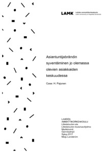 Opinnäytetyön aiheena on asiantuntijabrändin syventäminen jo olemassa olevien asiakkaiden keskuudessa. Opinnäytetyössä tutkitaan sitä, miten brändi rakentuu sekä mitä brändin syventäminen on ja miten se tapahtuu. Opinnäytetyön päätutkimuskysymys on: Miten voidaan syventää jo valmiiksi hyvää ja olemassa olevaa brändiä nykyisten asiakkaiden keskuudessa?