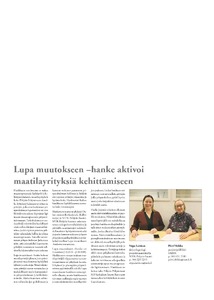 Lupa muutokseen –hanke aktivoi maatilayrityksiä kehittämiseen
