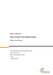 The target of this thesis was to find the best pricing model for Viking Line Estonia’s day cruises. The target company represents Viking Line’s third largest market after Finland and Sweden and the entire market-area includes Estonia, Latvia and Lithuania. The pricing model considers the dynamic pricing model of one-way trips, the fixed prices of campaigns and optimizes the day cruise pricing with regards to one-way trips.