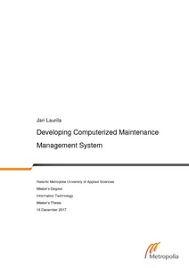 The thesis starts with background research in maintenance. Essential requirements for a CMMS are then defined and compared to the existing functionality and extendibility and customization capabilities of Dynamics 365. Based on the analysis a set of requirements is then defined for a prototype implementation.