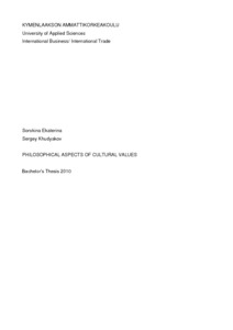The main goal is to prove that there is a strong connection between philosophy of a country and cultural values of inhabitance. Will be covered a deepest specification of chosen philosophies: Finland, Russia, United States and India.