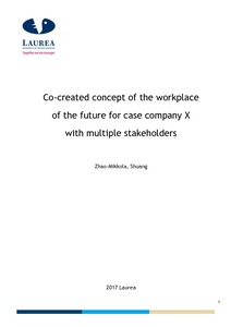 The purpose of the master thesis is to utilize service design theory and tools to co-create concepts of the workplace of the future with multiple stakeholders for company X. The proposed concepts are co-created with the customer, the decision maker and the service provider Y of case company X.