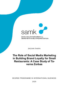 (2026)The thesis investigated the role of social media marketing in brand loyalty for a small restaurant, Taverna Zorbas in Helsinki. This thesis has tried to explain how the content of social media is consumed by users and what ... -
