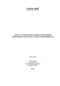Tämän opinnäytetyön tavoitteena oli kuulla Lapin ELY-keskuksen asiakkaiden odotukset tulevalta uudelta maakunnalta. Tutkimustyön tarkoituksena oli saada selville, mitä asioita maaseutuhallinnon asiakkaat toivovat huomioitavan palveluiden järjestämisessä ja mitä säilyttämisen arvoista nykyisessä järjestelmässä on.