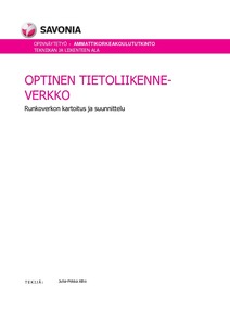 Opinnäytetyön aiheena oli optinen tietoliikenneverkko, tarkemmin runkoverkon kartoitus ja suunnittelu. Työn tavoitteena oli tuottaa Kuopion Energian voimalaitoksen alueelle toimiva ja muunneltava optinen tietoliikenneverkko.