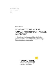 Tämän opinnäytetyön tarkoituksena oli selvittää alaikäisinä ilman huoltajaa tulleiden pakolaisnuorten omaan kotiin muuttoon ja itsenäiseen asumiseen liittyviä haasteita sekä nuorten tiedon- ja tuentarpeita. Tulosten pohjalta oli tarkoitus luoda opas, jonka avulla nuori voi yhdessä asumisyksikön ohjaajan kanssa valmistautua muuttoon ja sen tuomiin muutoksiin. Opas tulee osaksi suurempaa kokonaisuutta, jonka kokoaa opinnäytetyön toimeksiantaja, Sata omenapuuta -hanke. Opaskokonaisuus on tarkoitettu maahanmuuttajanuorten kanssa tehtävään työhön. Sen muita aiheita ovat taloudenhallinta, toiminnallinen kielenoppiminen sekä sosiaaliset suhteet.