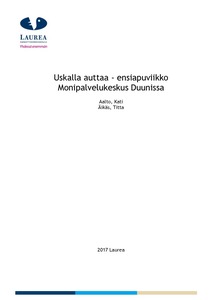 Toiminnallisen opinnäytetyömme tarkoituksena oli antaa Monipalvelukeskus Duunin asiakkaille valmiuksia toimia erilaisissa ensiapua vaativissa tilanteissa. Opinnäytetyömme tavoitteena oli toteuttaa ensiapuviikko Monipalvelukeskus Duunissa. Ensiapuviikon tavoitteena oli opettaa ensiavun perustaitoja ottaen huomioon asiakkaiden erityispiirteet ja -tarpeet. Henkilökohtaisena tavoitteenamme oli vahvistaa omaa ohjausosaamistamme. Toimeksiantajana toimi Porvoossa sijaitseva Monipalvelukeskus Duuni, joka on osa Uudenmaan vammaispalvelusäätiön työllistymis- ja kuntoutuspalveluja.