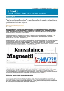 Artikkelissa eritellään vastamedioiksi luokiteltavien MV-lehden, Magneettimedian ja Verkkomedia Kansalaisen käsittelemiä teemoja sekä sivustojen maailmankuvaa. Sivustojen käsittelemät teemat saatiin selville teemoittelemalla sivustoilla julkaistut 207 juttua 12 eri teemaan kehysanalyysin keinoin. Kuusi teemoista liittyi maahanmuuttoon, ja loput kuusi muodostivat hajanaisen kokonaisuuden. Sivustot luovat kuvaa maailmasta, jossa vallitsee vastakkainasettelu.