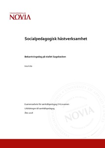 Tässä toiminnallisessa opinnäytetyössä käsitellään tietoisuuden levittämistä sosiaalipedagogisesta hevostoiminnasta ruotsiksi. Sosiaalipedagoginen hevostoiminta on suhteellisen uusi toimintamuoto Suomessa, joka ei ole saanut sen suurempaa näkyvyyttä sosiaalisen kasvun ja hyvinvoinnin tukemisessa, sekä syrjäytymisen ehkäisyssä.
