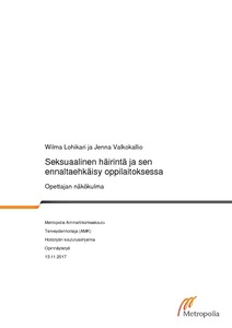 Opinnäytetyön tarkoituksena oli selvittää ammatillisen oppilaitoksen opettajan näkemyksiä ja kokemuksia oppilaitoksessa tapahtuvasta seksuaalisesta häirinnästä sekä sen ennaltaehkäisystä. Tavoitteena oli tuottaa tietoa Metropolia Ammattikorkeakoulun seksuaalisen häirinnän “Meidän koulussa voidaan hyvin” -täydennyskoulutukseen, joka on suunnattu ammatillisen koulutuksen opettajille. Opinnäytetyö on osa laajempaa kokonaisuutta “Koulu ja opiskeluterveydenhuolto; Terveydenhoitajan työmenetelmät ja yhteisöllinen terveyden edistäminen”.