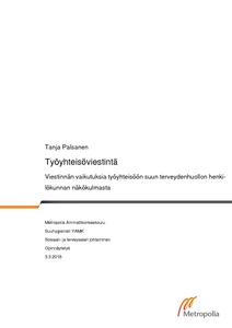 Työyhteisöviestintä : viestinnän vaikutuksia työyhteisöön suun terveydenhuollon henkilökunnan näkökulmasta