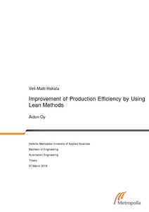 Tämä automaatiotekniikan insinöörityö tehtiin pohjoismaiden johtavalle älykkäiden energiamittareiden ja verkkotoimintojen toimittajalle Aidon Oy:lle. Työn tarkoituksena on parantaa tuotannon tehokkuutta Aidonin kustomointikeskuksessa (ACC) Lean-menetelmien avulla. Menetelminä käytettiin arvovirtakuvausta (VSM), pohjapiirrustus muunoksia sekä Six Sigma DMAIC -työkalua.