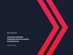 Opinnäytetyössä perehdytään liikunta-alan mobiilisovelluskonseptin luomiseen käyttäjälähtöisestä näkökulmasta. Mobiilisovellusta lähestytään palveluna, jonka avulla voidaan tuoda lisäarvoa käyttäjän arkeen. Ajatuksena on tehdä liikkumisesta mielekkäämpää, sillä liikunnan määrä on selvässä laskussa, mutta alalla on vielä runsaasti tilaa digitaaliselle kehitykselle.