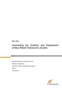 The primary objective of this thesis project was to study options for carrying out the improvement of the Robot Framework library creation process, and to finally develop an implementation for an automated system. The goal of the automated system was to create a new Robot Framework library into the version control system and to generate all needed Jenkins jobs for the new library with minimal user input and effort.
