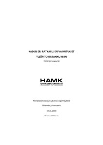 Tässä opinnäytetyössä tarkastellaan katujen ylläpitokustannuksia Helsingin kaupungissa. Työn toimeksiantajana on Helsingin kaupunki. Ohjaajina toimivat Helsingin kaupungin ylläpitoinsinööri Tuomas Lautaniemi ja Hämeen ammattikorkeakoulun liikennealan lehtori Rami Tervo.