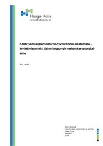 Tämän työelämän kehittämisprojektin tavoitteena oli kokeilemalla kehittää työntekijälähtöis-tä työhyvinvoinnin edistämistä Salon kaupungin yhdelle varhaiskasvatuksen yksikölle.