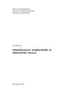 Opinnäytetyön aiheena on ennakkoluulot suomalaisten ja venäläisten välillä. Työn tarkoituksena on selvittää miten venäläiset perheet sopeutuvat suomalaiseen kulttuuriin. Tämän työn tavoitteena on vähentää maahanmuuttajien syrjäytymisriskiä ja pohtia ennakkoluuloja ja stereotypioita