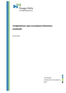 Opinnäytetyö on muodoltaan toiminnallinen, ja sen tuotoksena syntyi venäjänkielinen opas suomalaisen tilitoimiston asiakkaalle. Opas on kehitetty taloushallinnon palveluja tarjoavien auktorisoitujen tilitoimistojen ja konsulttiyritysten valtakunnallisen toimialaliiton, Suomen Taloushallintoliitto ry:n, toimeksiannosta. Oppaassa kerrotaan potentiaalisille venäjänkielisille tilitoimiston asiakkaille taloushallinnon ulkoistamisesta, Suomen tilitoimistoalasta ja auktorisoitujen tilitoimistojen palvelutarjonnasta, minkä lisäksi opas antaa lukijoille vahvan peruskuvan taloushallinnon järjestämisestä Suomessa.
