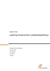 Tämän insinöörityön tavoitteena oli tutkia Salesforce-pilvipalvelun Lightning-komponenttien uudelleenkäytettävyyttä. Uudelleenkäytettävyyden tutkimuksen yhteydessä tavoitteena oli käynnistää Fluido Oy:ssä uudelleenkäytettävyyden prosessi. Tarkoituksena oli, että kom-ponentteja pystyisi asentamaan mihin tahansa Salesforce-ympäristöön helposti.