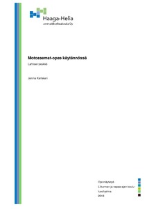 Tässä opinnäytetyössä tehdyssä tutkimuksessa tarkoituksena oli testata Suomen Vammaisurheilu ja – liikunta ry:n sekä Special Olympics Finlandin tekemää Motoasemat-opasta käytännössä sille suunnatulla kohderyhmällä. Tutkimuksella halutaan selvittää oppaan toimivuutta sekä saada uusia näkökulmia toiminnan toteuttamiseen. Tutkimusongelmina on kohderyhmän suhtautuminen motoristen taitojen harjoitteluun, oppaan sisältöjen toimivuus käytännössä uudessa toimintaympäristössä sekä arviointimenetelmien mahdollinen epätarkkuus.