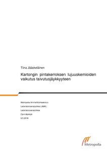 Opinnäytetyö tehtiin Kemira Oyj:n tutkimuskeskuksessa Espoon Suomenojalla, Fiber & Bioeconomy -osastolla. Työn tarkoituksena oli tutkia kartongin pintakerrokseen käytettävien lujuuskemikaalien vaikutusta taivutusjäykkyyteen. Kuluttajapakkauskartongeilla tärkein mekaaninen ominaisuus on taivutusjäykkyys. Kartongista pyritään tekemään entistä kevyempää nostamalla keskikerroksen bulkkia (paperin tiheyden käänteisarvo, nk. ominaistilavuus) säilyttäen samalla sen lujuusominaisuudet.
