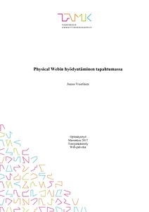 Opinnäytetyön tarkoitus oli testata Physical Webin hyödyntämistä 06.10.2017 pidetyssä Sustain2017 -tapahtumassa. Tämän testauksen tuloksia apuna käyttäen oli tavoitteena tuottaa ohjeet tapahtumajärjestäjälle, joka suunnittelee Physical Webin hyödyntämistä tapahtumassa. Ohjeessa kerrotaan tarvittavasta tekniikasta ja sen käyttöönotosta, mutta myös markkinoinnista ja kävijöiden informoinnista ennen tapahtumaa ja sen aikana.