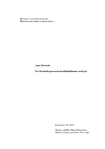 Tämän insinöörityön aiheena oli laadunhallinnan analyysi merikarttojen valmistusprosessissa. Työn tavoitteena oli etsiä ja analysoida merikartoitusaineistossa usein esiintyviä virheitä. Virheitä syntyy merikartoituksen eri työvaiheissa, ja mitä aikaisemmin virheet saadaan korjattua, sitä sujuvammin ja nopeammin merikarttojen valmistus etenee. Ongelmaksi oli koettu virheiden havaitseminen vasta karttojen lopputarkastuksessa. Merikarttojen valmistusprosessia on tarkoitus kehittää analyysin pohjalta niin, että virheet korjataan jo prosessin alkuun sijoittuvassa editointivaiheessa. Lopputuloksena on suoraviivainen ja tehokkaampi merikarttojen valmistusprosessi.