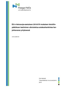 Tämän opinnäytetyön toimeksiantajana oli ulkoistettua asiakashankintaa harjoittava yritys, jolle laadin EU:n tietosuoja-asetuksen mukaisen tietotilinpäätöksen.